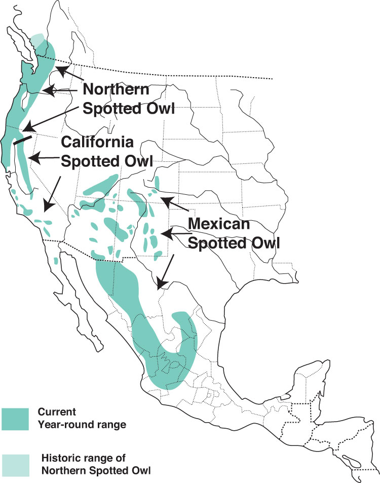 Fortunately, many groups and individuals are working to protect the Spotted Owl by conserving the old-growth forests that these owls rely upon. With luck, these dark-eyed owls of the night will someday be able to make a come-back in the western forests they call home.
